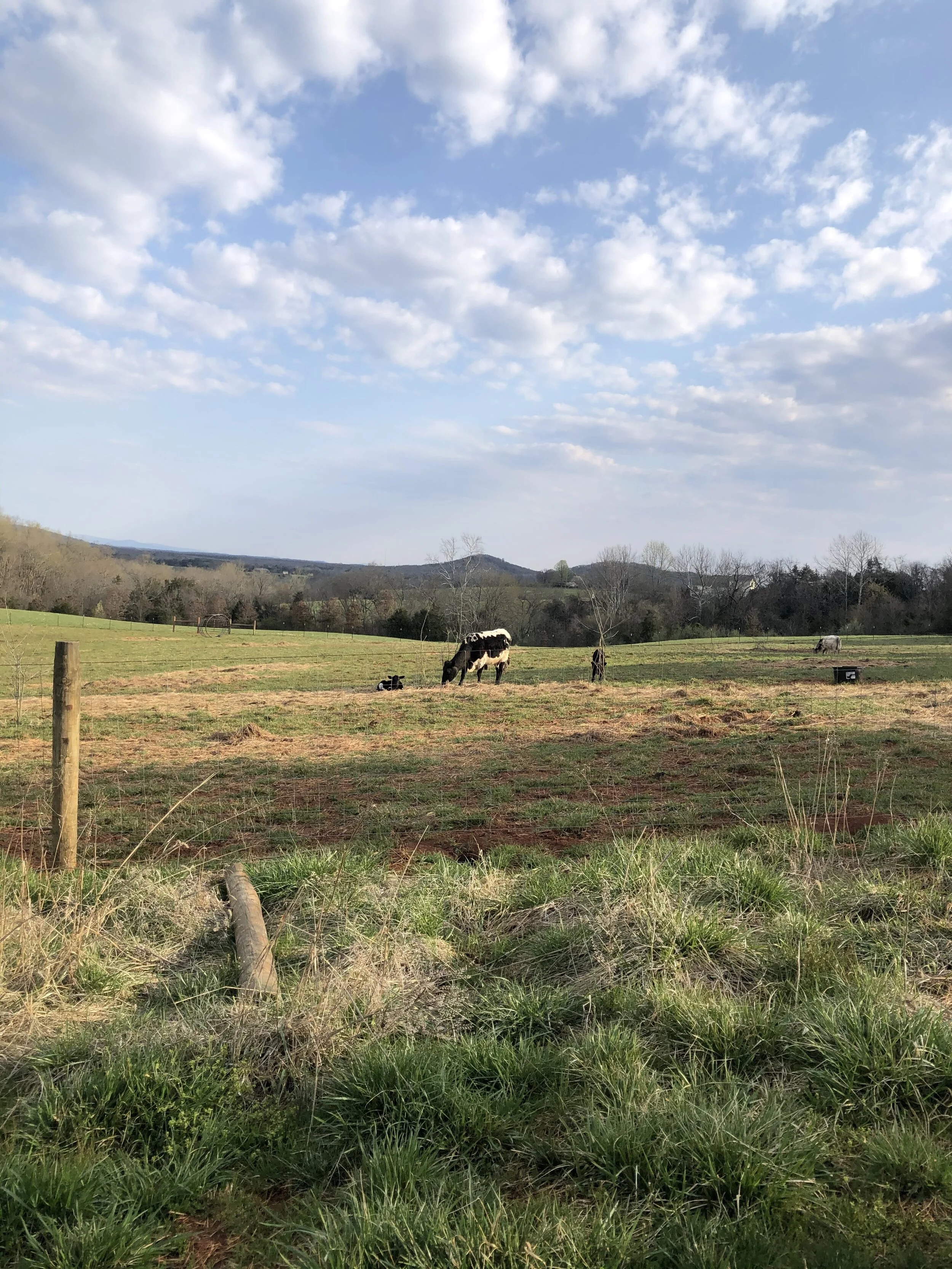 Almost half of Cabin Point was part of a USDA conservation program promoting native habitat restoration along the Rapidan River, which is a Chesapeake Bay watershed. It is now part of a working farm that helps us to restore our land. Cows are crucial to maintaining the fertility of the soil and keeping the pasture grasses free from overgrowth.